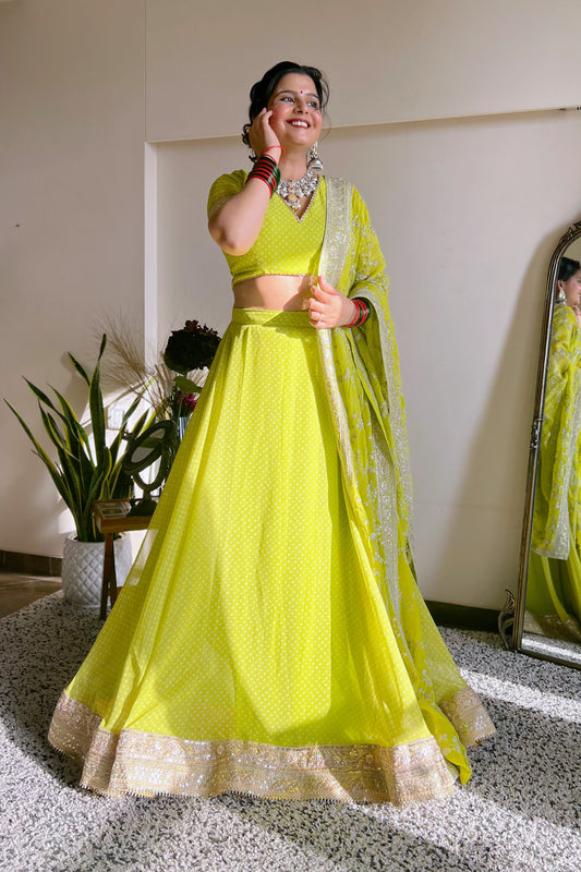 Bandhej Lehenga with Zari Dupatta