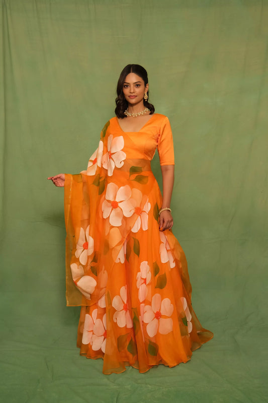 Orange Flora Handpainted Lehenga Set