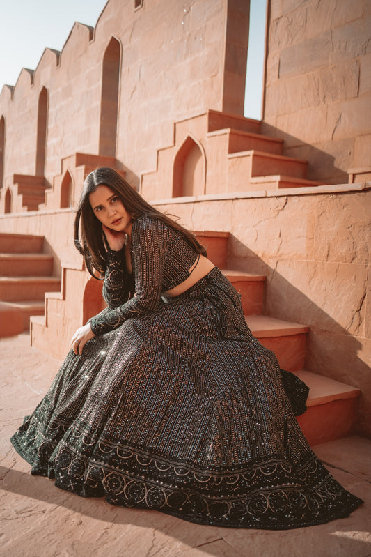 Black Shimmer Chikankari Lehenga