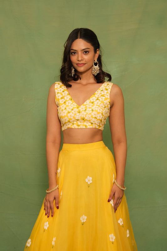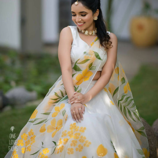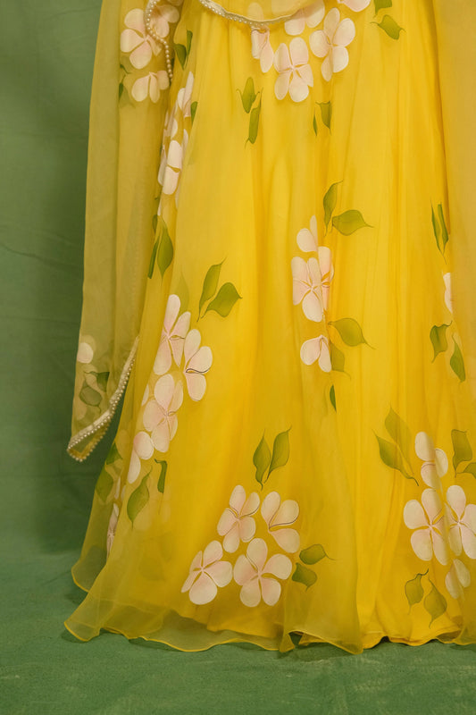 Yellow Mogra Handpainted Lehenga