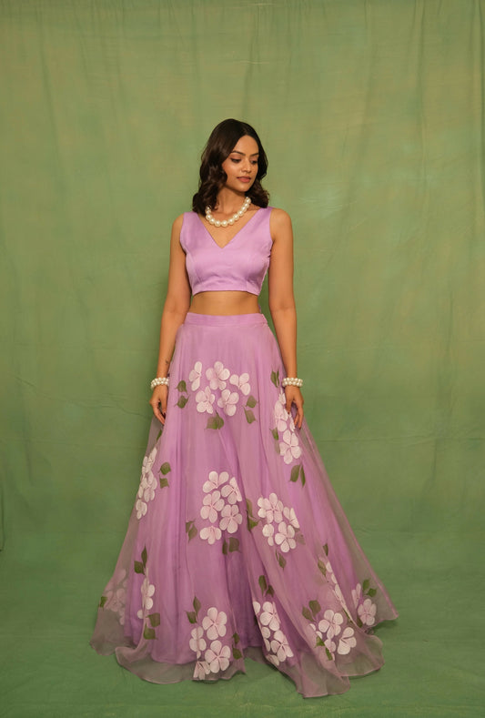 Lavender Champa Handpainted Lehenga