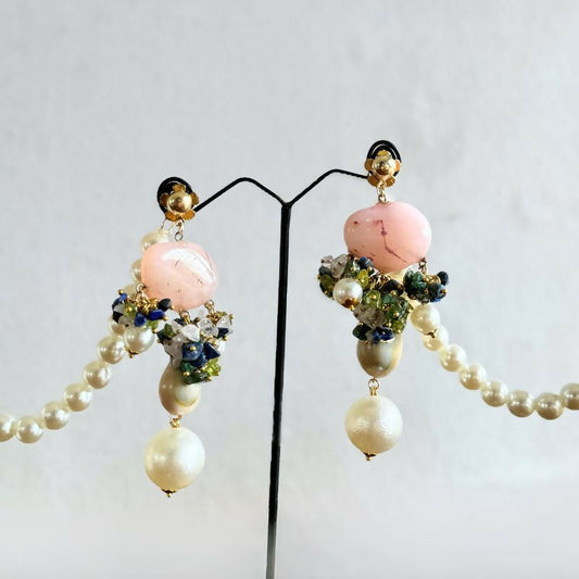 • Rose Quartz Kundan and Pearl Choker Necklace Set
