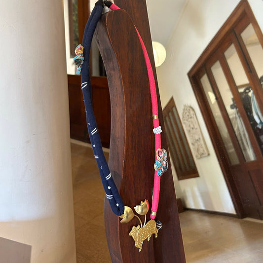 Pichwai Inspired Brass Textile Necklace