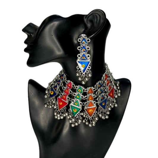 3D Brass Panch Rang Handpainted Necklace