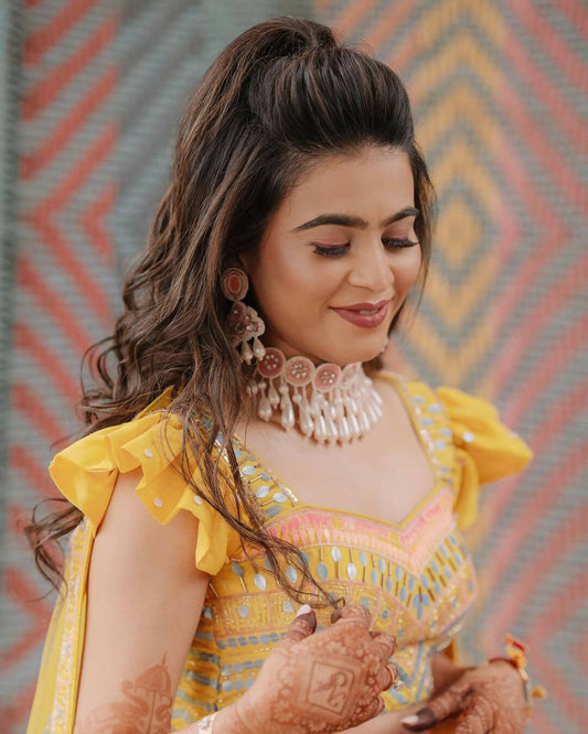 Mini Rang Choker Set with Choker, Earrings, Mang Teeka