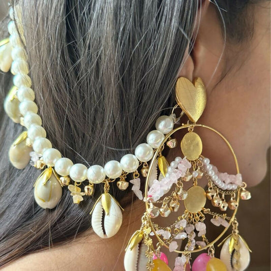 Naina Multicolor Stones Pearl Danglers