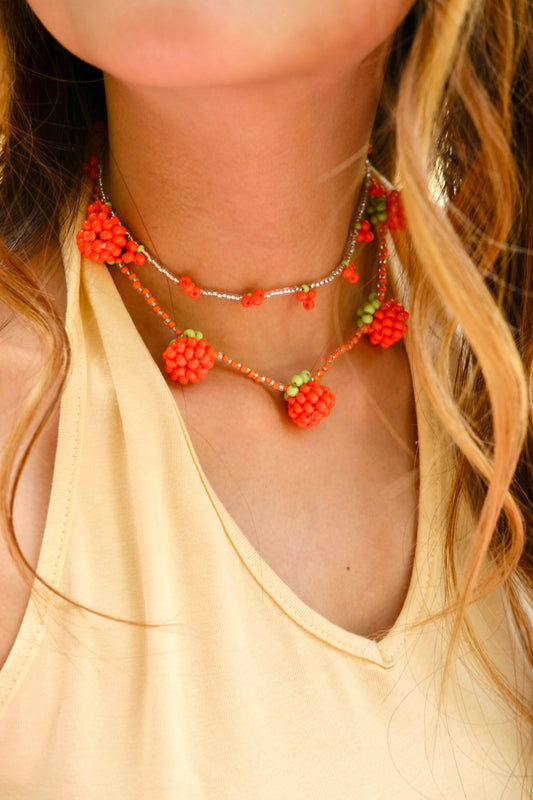 Sold outOrange Beaded Necklace Set of 2