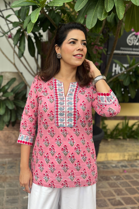 Printed Sequinned Pure Cotton Kurti