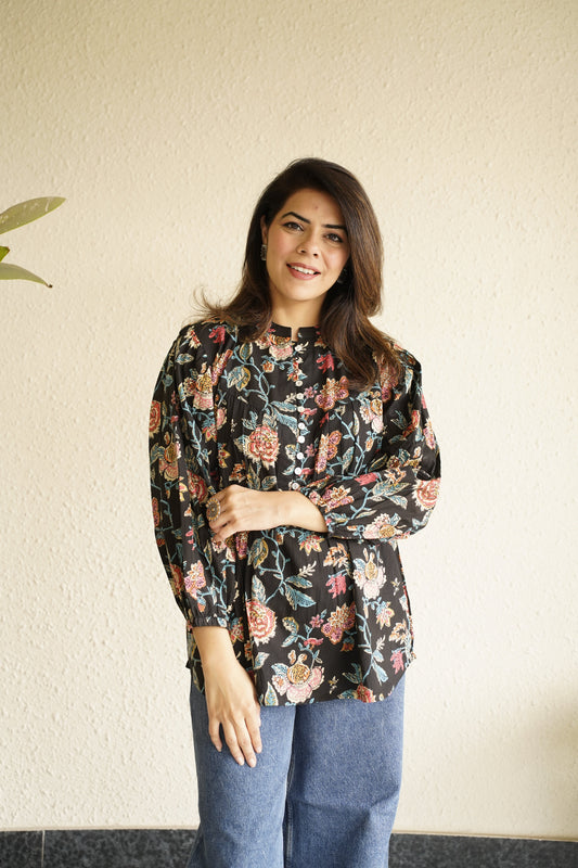 Sold outBlack Floral Print Cotton Top