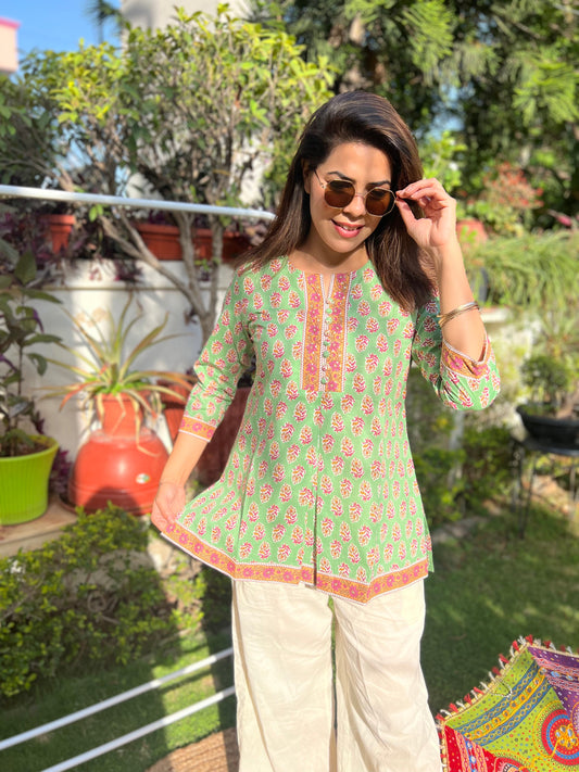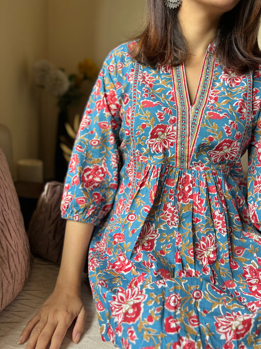 Meher Sky Blue Handblock Print Kurti