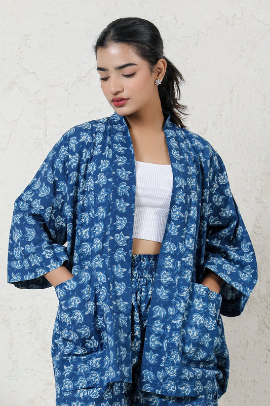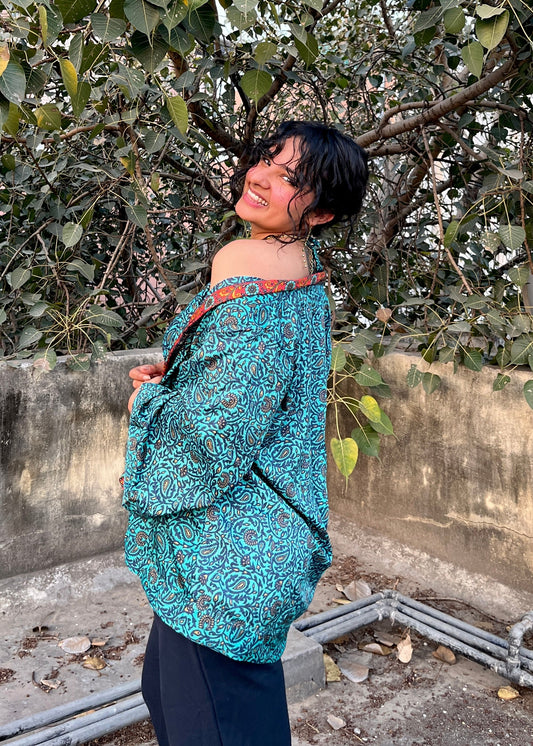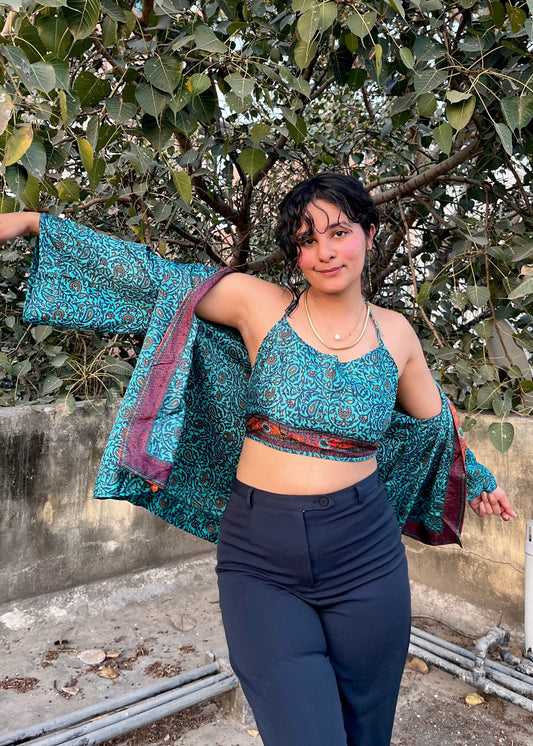 Kimono & Halter Neck Top Set (2 Piece) - Teal