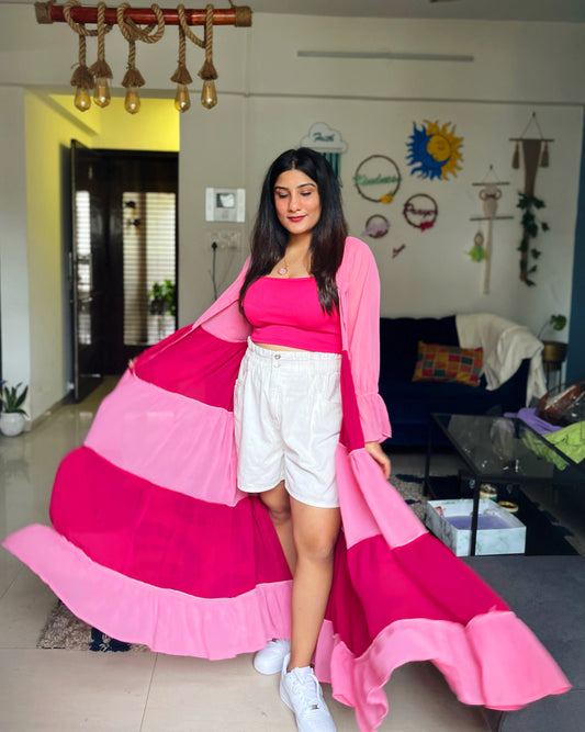 Pink & Orange Georgette Superhero Cape