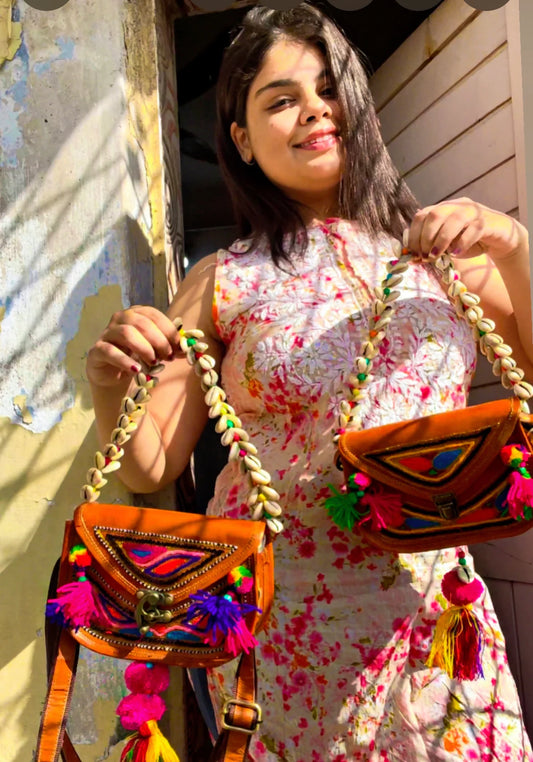 Mini Blue and Pink Handblock Printed Tote Sling Bag