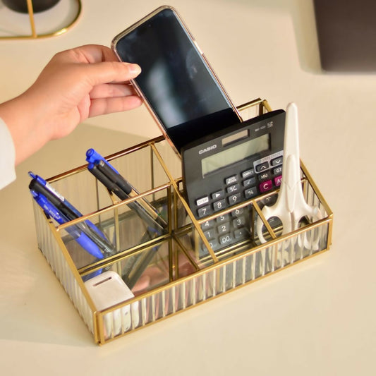 Fluted Glass Desk Organizer | Make-up Organiser| Toiletry Organiser