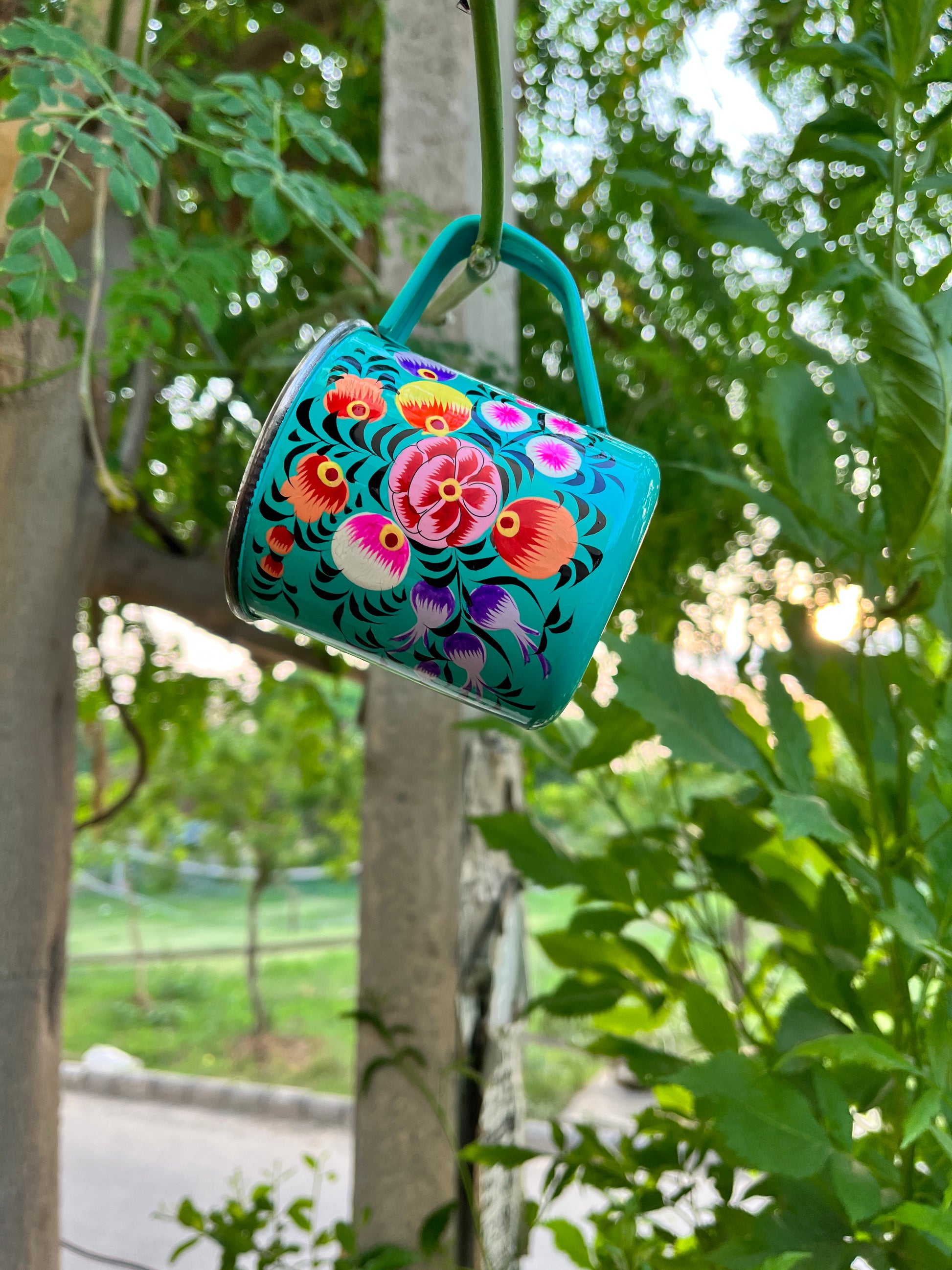 Elevate your morning routine with the Bloom Coffee Mug. Hand painted by skilled artisans, this stainless-steel mug is not only aesthetically pleasing, but also durable and unique. Enjoy your favorite tea or coffee in style with this one-of-a-kind piece.