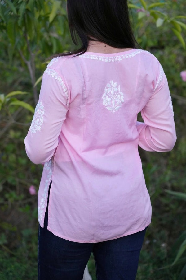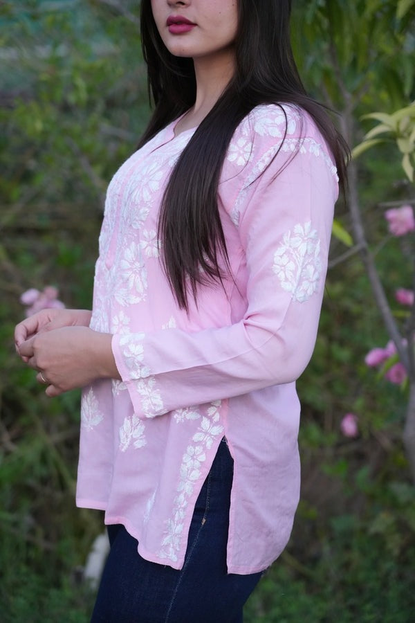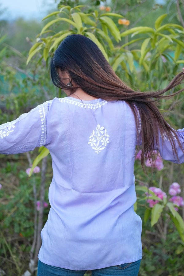 The perfect top to beat the summer heat, this Chikankari hand embroidered top is super soft and made from pure modal. The fabric is lightweight and will make you feel cool all day long. Pair it with trousers or denim jeans for a casual look, or add it to your summer wardrobe for a more dressed up look.
