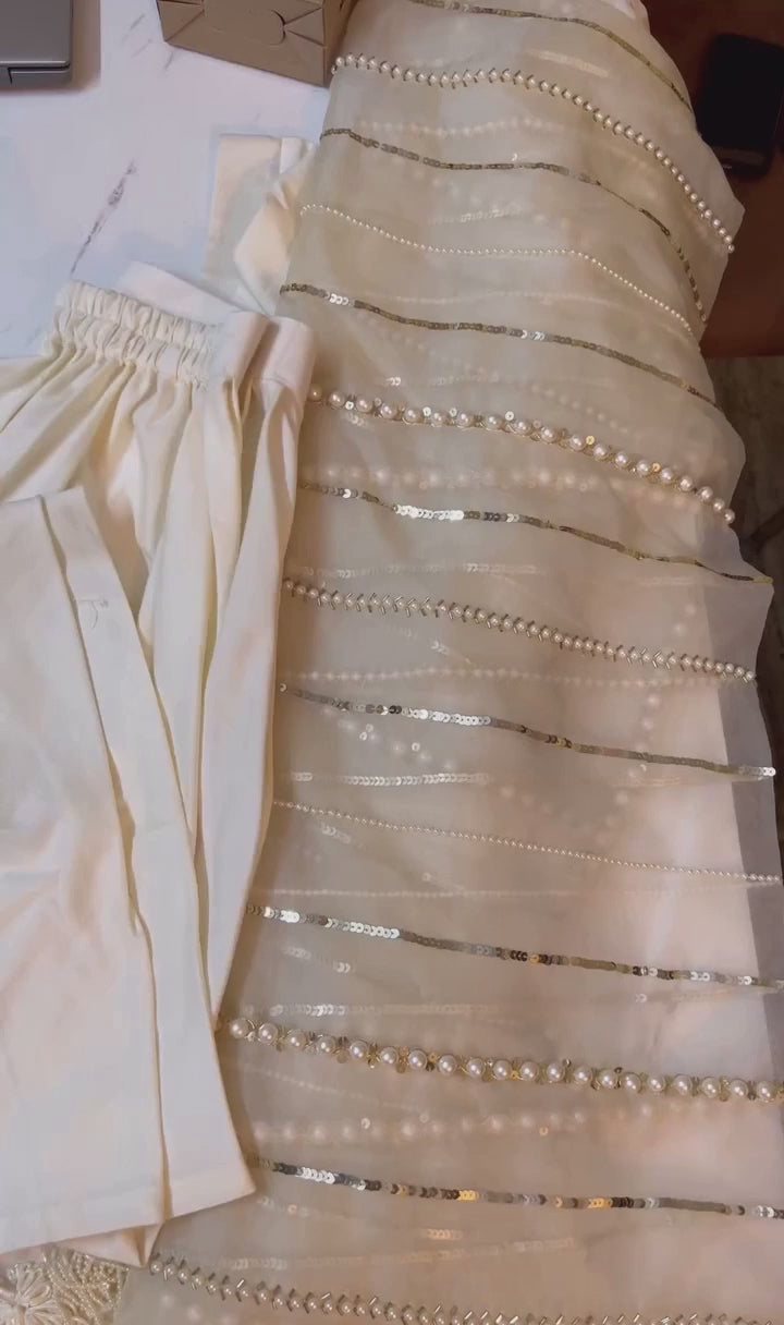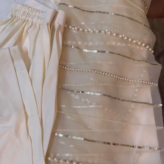 Isha Pearl Suit Set with Hand-embroidered Dupatta