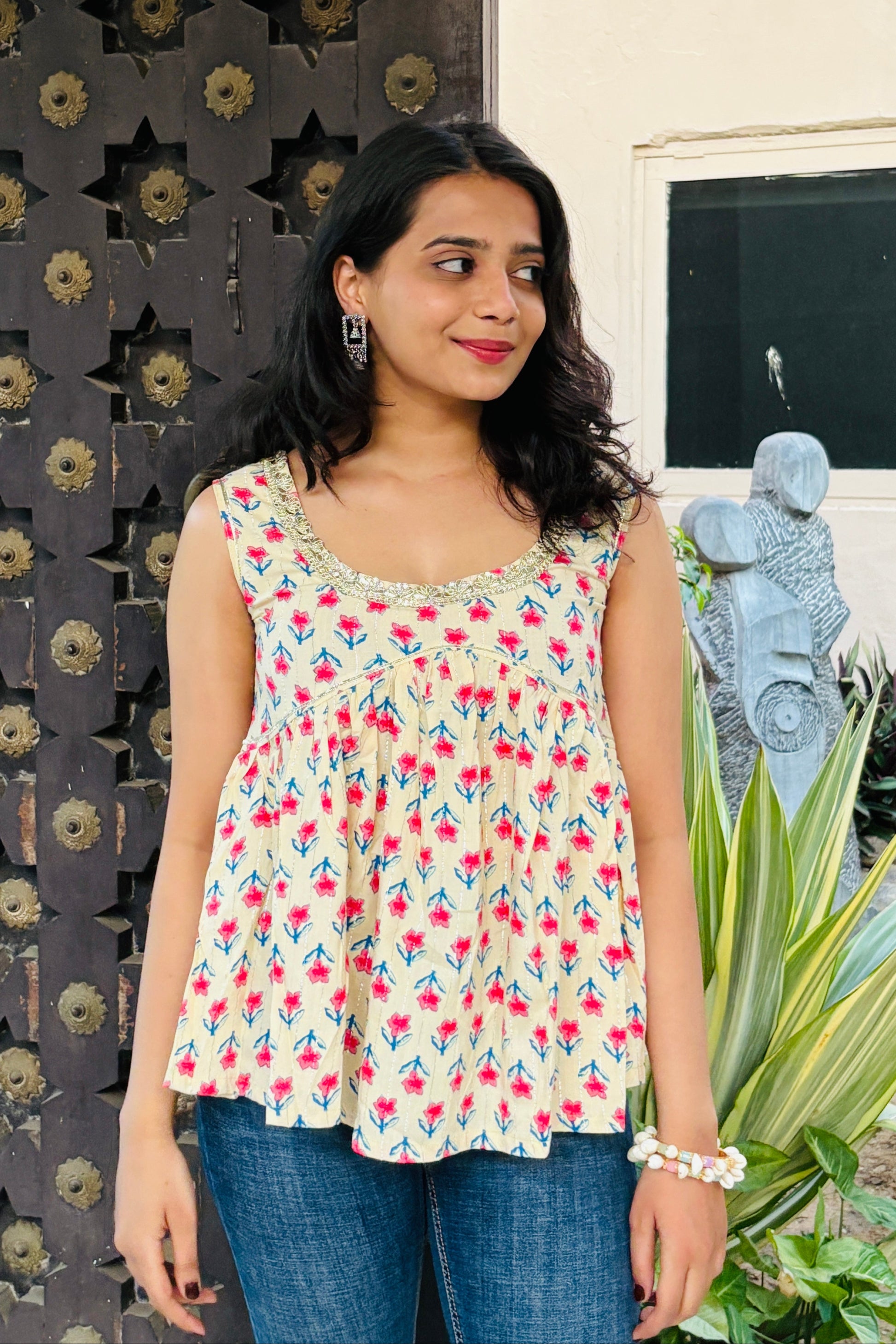 Breezy, elegant, and effortlessly charming, the Jasmine Peplum Kurti is a tribute to Jaipur's timeless artistry. Crafted from soft cotton with delicate hand-block prints, it features a flattering empire waist and playful peplum silhouette. Perfect for casual outings or festive momentspair it with jhumkas or denim for a fusion twist.