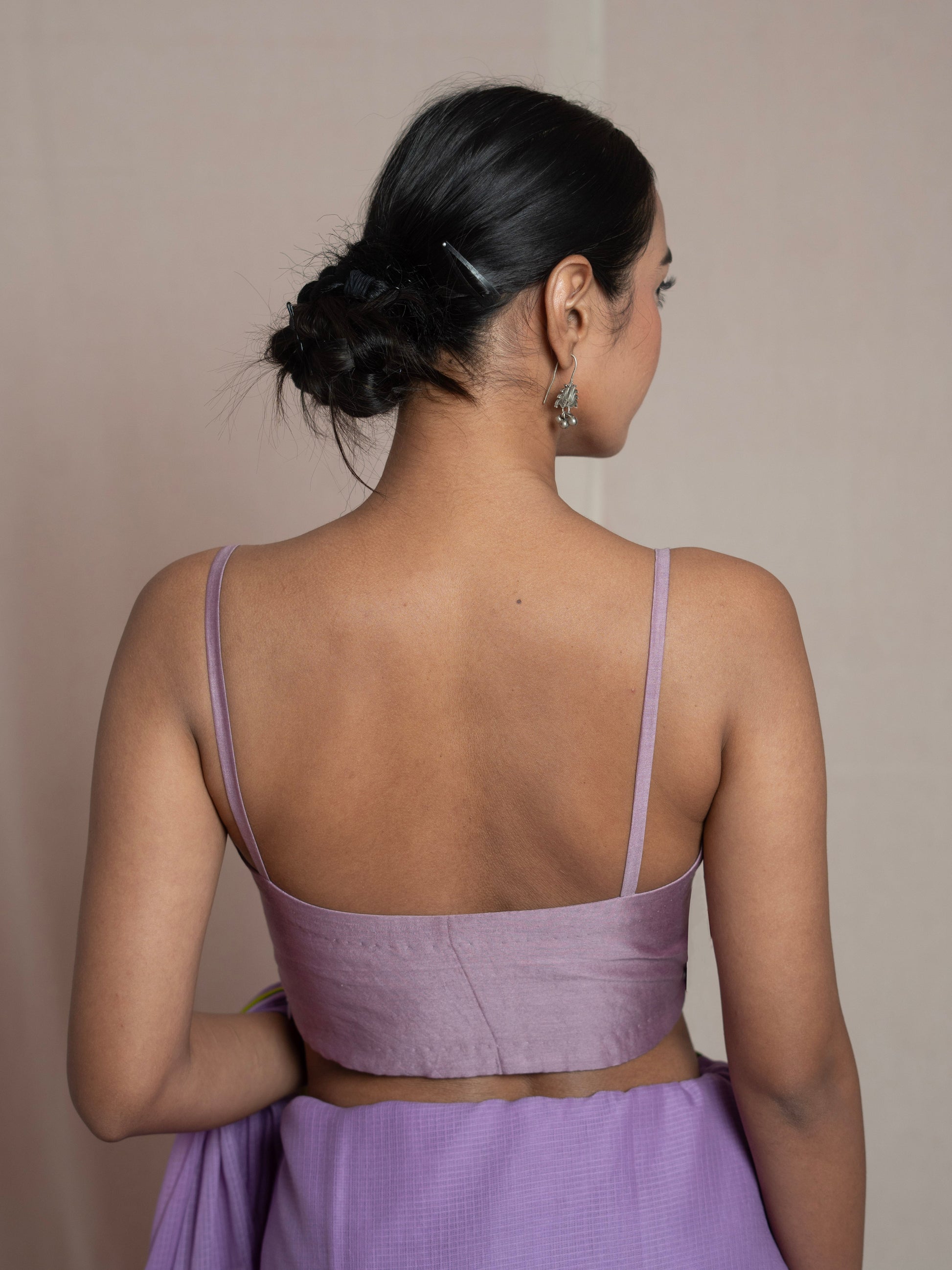 Indulge in luxury with our Lavender Rani Blouse. Made from natural chanderi silk, and soft cotton lining for added comfort. Its soft texture and elegant lavender hue exude sophistication. The low back design, padding, and side zipper closure provide a seamless fit, making it a must-have for any fashionista's wardrobe. Elevate your style with this exclusive piece.