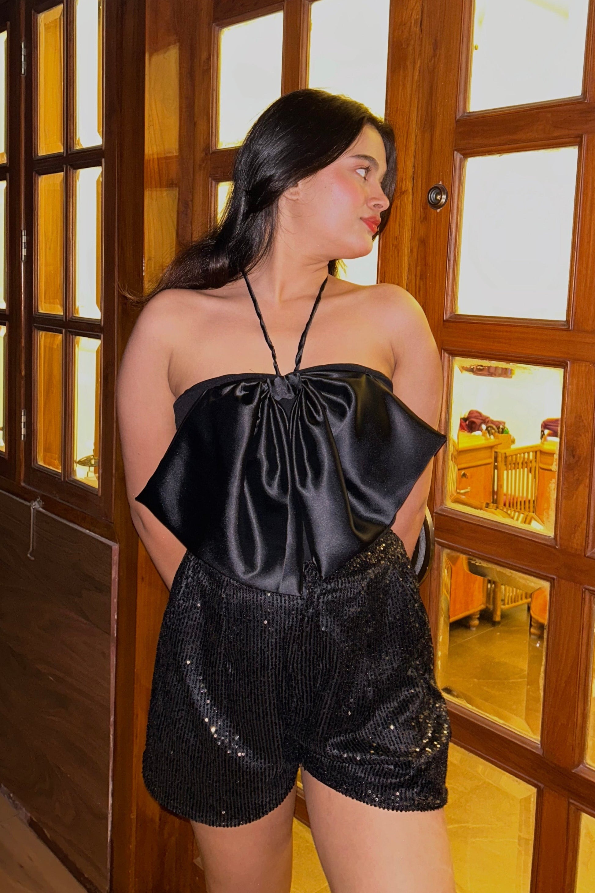 Step into effortless elegance with the Beige Dazzle in the Luna Set—a stunning black lycra halter neck top paired with a shimmering sequined shorts. Designed to sculpt and shine, this statement ensemble blends sleek sophistication with bold glamour. Perfect for nights out, parties, or making an unforgettable entrance.