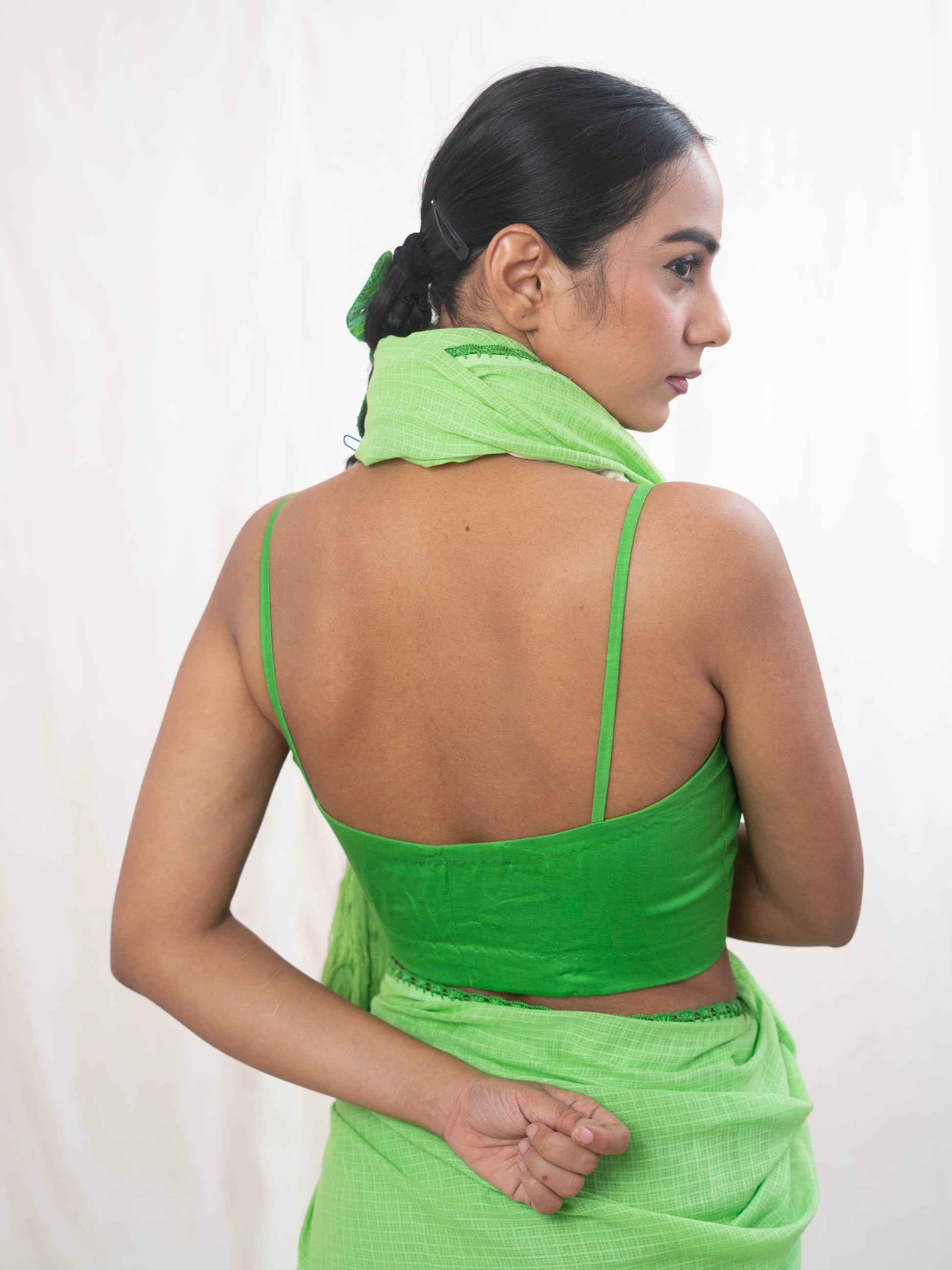 Introducing the Malika Green Blouse - a luxurious addition to your wardrobe. This pretty green blouse features a side zipper closure for a sleek silhouette and is made from naturally dyed glazed cotton for a unique touch. The comfortable cotton lining adds an extra layer of comfort. Elevate your style with this exclusive piece.