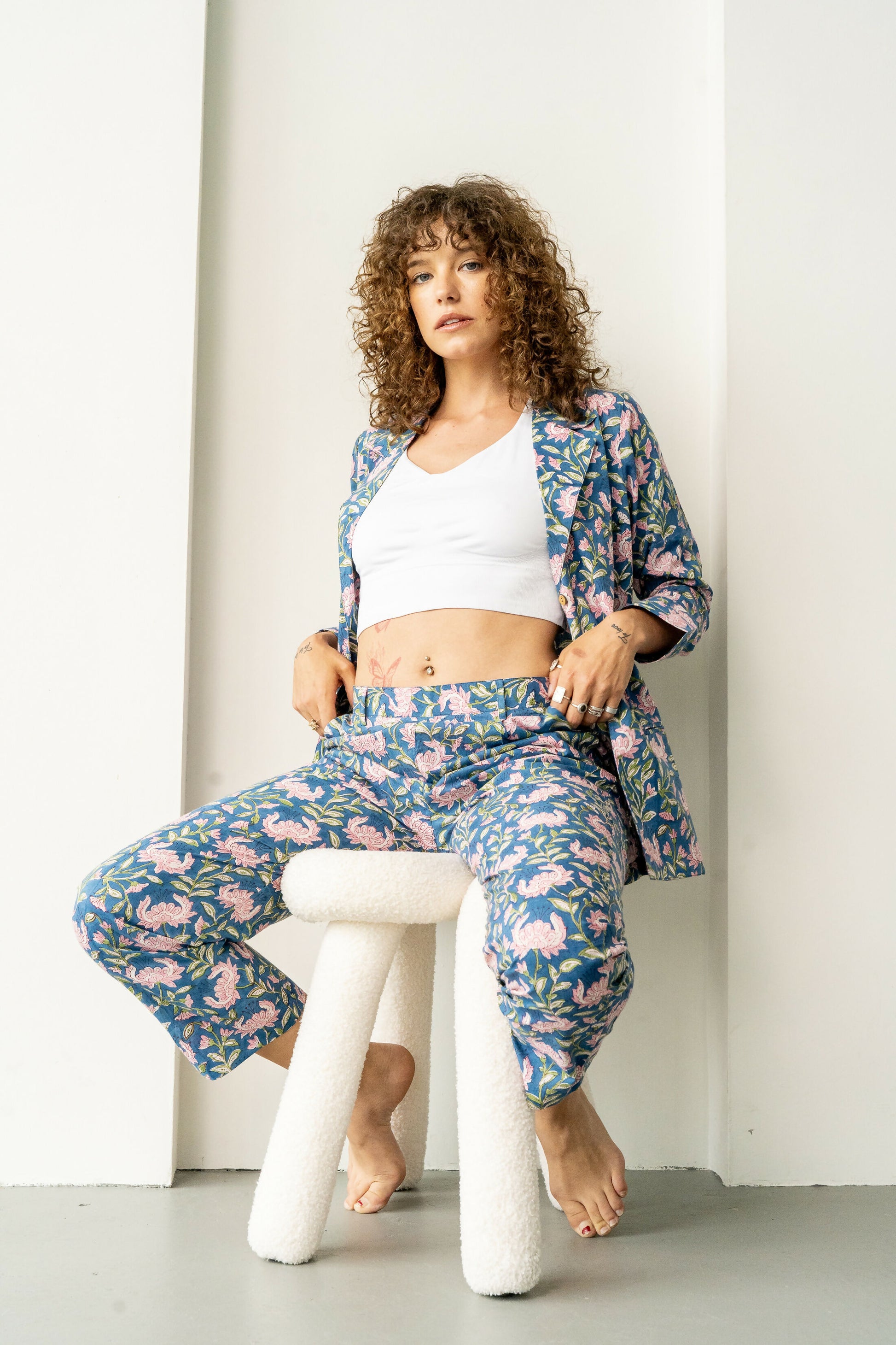 Midnight Blue & Pink Floral Blazer and Pant Set