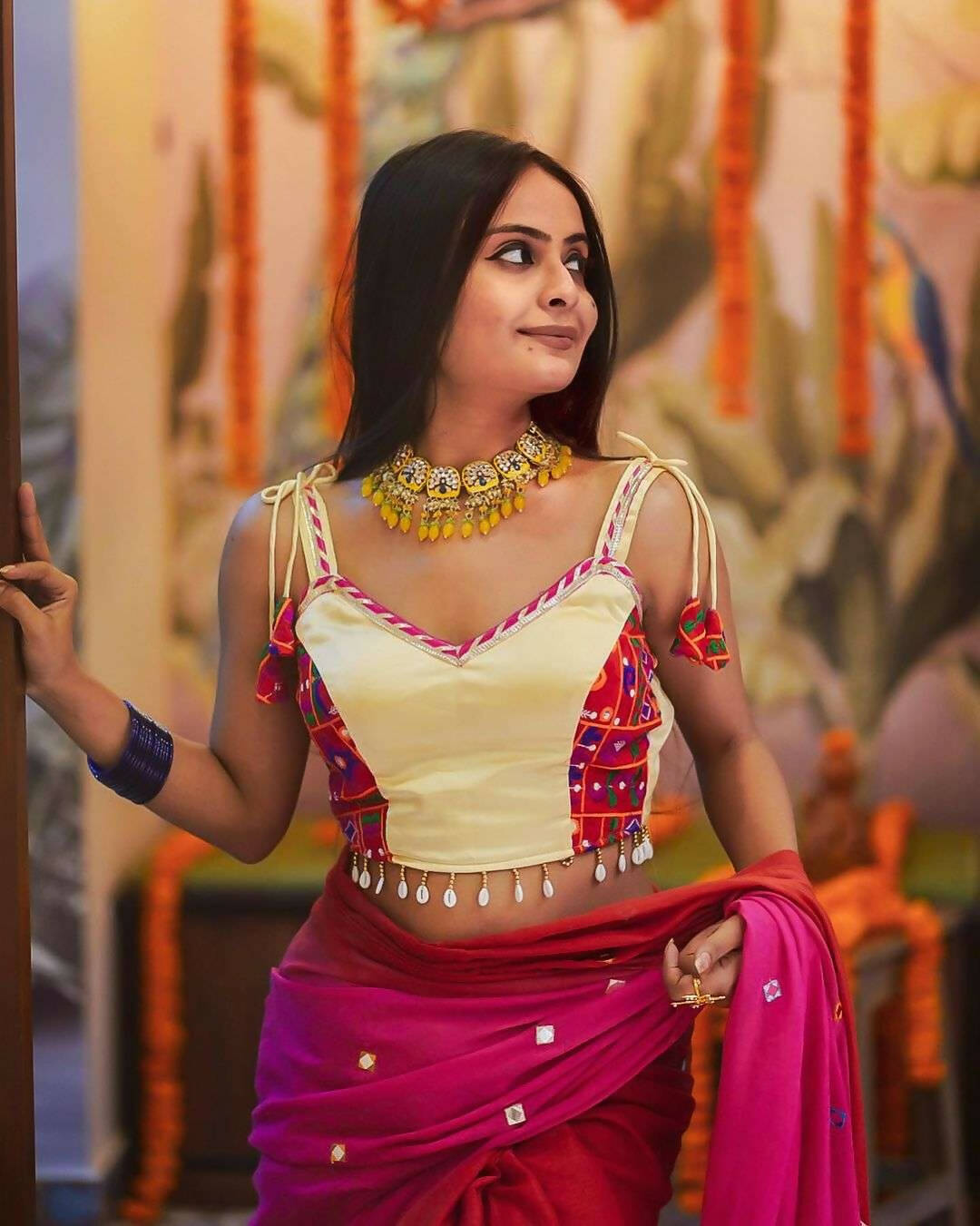 Elegantly designed to complement any saree, this blouse is a timeless fusion of tradition and style. And a perfect piece to add a statement to your attire! Pair it with a monotone saree or go all over by pairing it with a contrast saree. This one will surely will be a statement piece in your wardrobe.