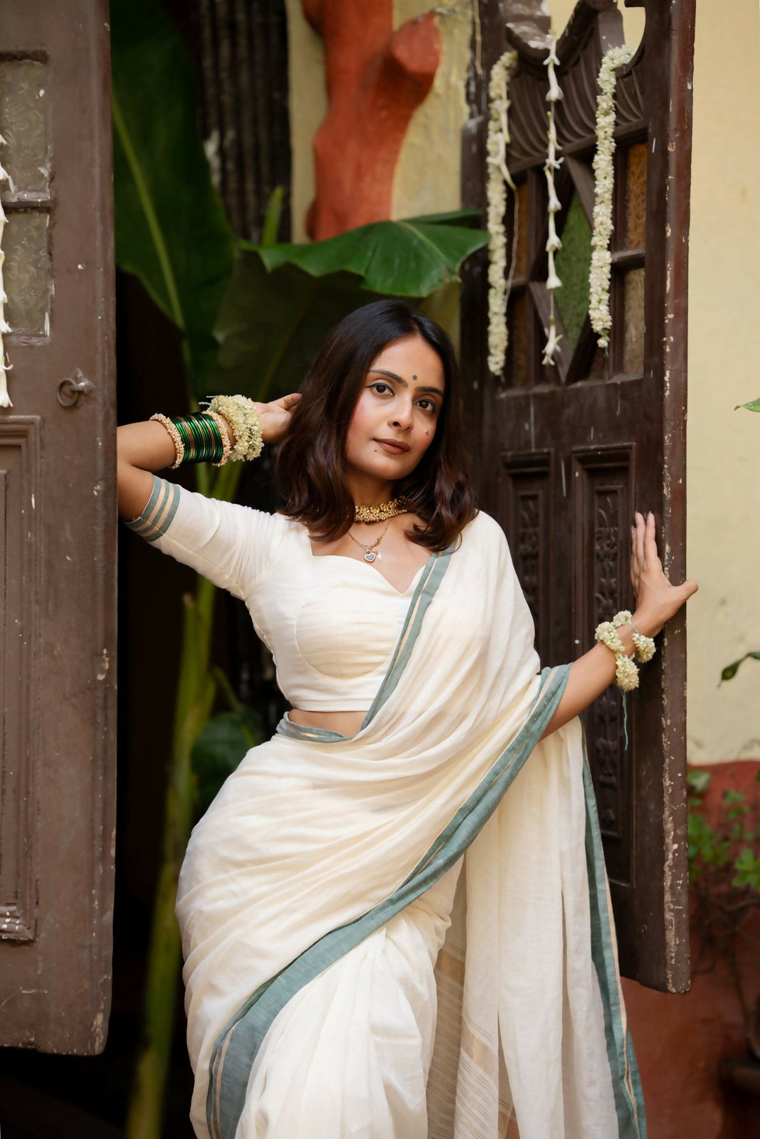 Handwoven pure cotton blouse featuring a soft cotton lining for both body and sleeves, blending comfort with refined craftsmanship.