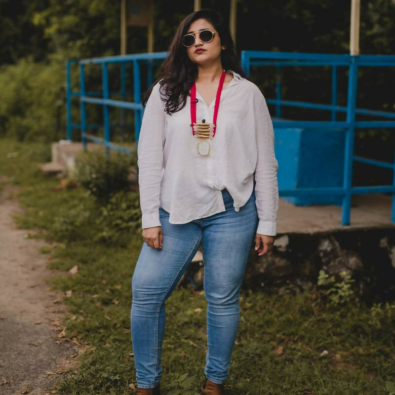 This Tibetan Temple Necklace is handcrafted with contemporary agate stones to give a unique look. The design is inspired by Tibetan temples with an Indian aesthetic with woollen red color threads, to give you a special ethnic style. It’s sure to become a signature piece in your wardrobe.